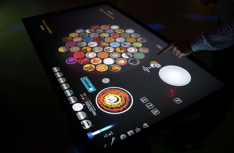 Virtual Microbial Art Lab is an interactive exhibit that invites visitors to create vibrant 'living' artworks. On a multi-user digital table, visitors simulate the real-world lab process of painting with microbes in a dish of agar. When they incubate their work, they see the colorful microbes blossom and grow. Visitors can explore a gallery of award-winning art, uncover 'Easter Egg' animations that take over the entire tabletop, and share their artwork to their mobile devices. Part of the Microbes Rule! exhibition at LSC, VMAL is a rich, engaging experience that blends science and art.
