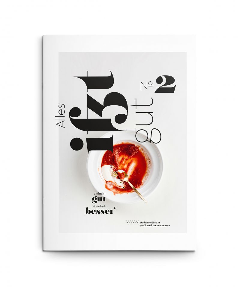 „Alles ißt gut“ (“Everything is/eats well” — a German playword) is the second magazine with the favorite recipes of the bloggers Karin Stöttinger and Mara Hohla. Everything is cooked according to the motto „simply good is simply better“: simple, refined and creative. This is also reflected in the style of photography. Reduced food arrangements, generous white space. Typographically, this is an alternative draft to the Internet blog layout. The outcome is like the cooking: handicraft and craftsmanship become visible.