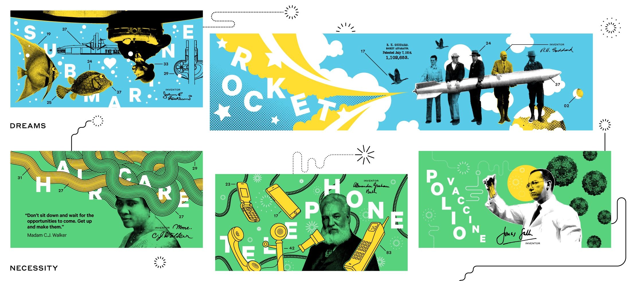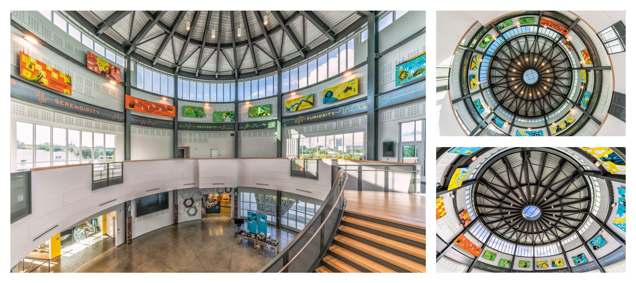 The Cade Museum for Creativity and Invention was moving toward a grand opening with a gorgeous building under construction and plans for exhibits that would serve the greater Gainesville, FL community.They approached Parisleaf to discuss a marketing campaign, but what they truly needed was a brand overhaul that would serve the museum for decades to come.Parisleaf delivered a full verbal and visual identity including a versatile logo as well as exterior signage, banners, and a permanent exhibit. Attached you’ll find images and artwork for the permanent exhibit we designed for the rotunda.