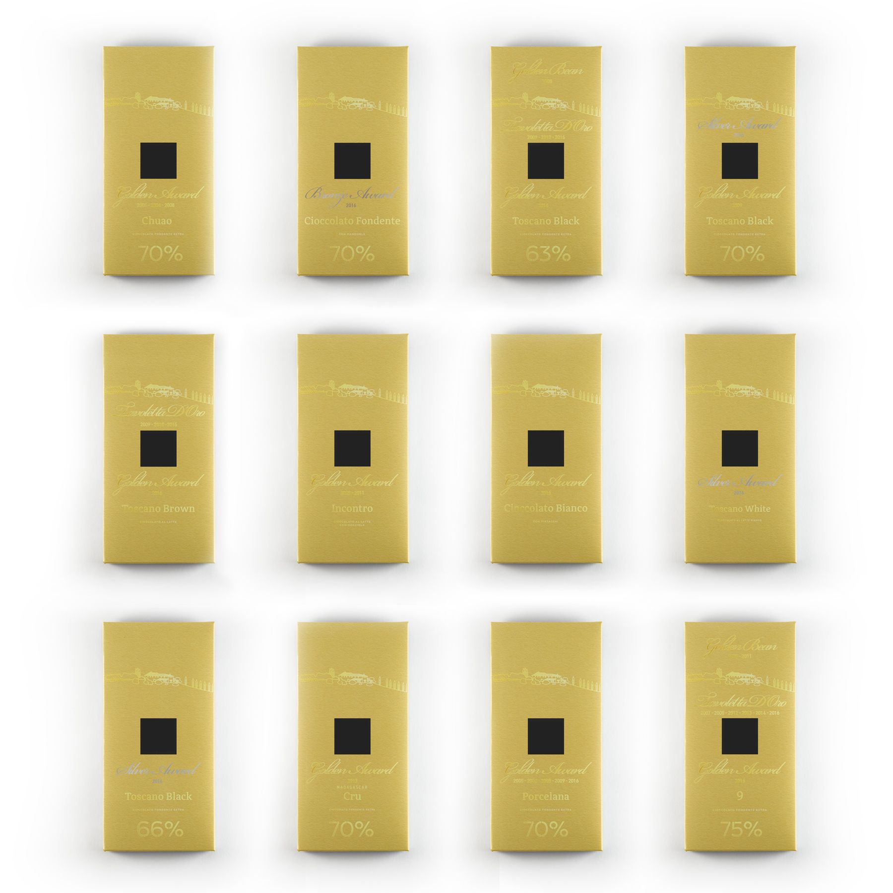 I was hired by "Colorful Concepts", one of the brand distributors at the time, to tackle a redesign of the current products look. To define a clear identity, I decided to settle on a single "Tuscanian yellow" color for all lines, plus the detection, definition and visualization of six reading levels, each to be made by a different font with its feelings and a custom stencil. An handmade, territory driven illustration was delivered as well - to define the roots of the brand; plus, for the first time, each chocolate award was given recognition. Sadly, client vanished and remained just a proposal