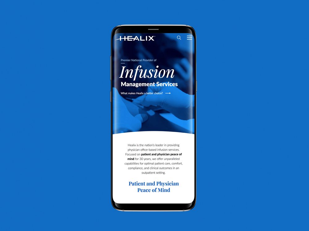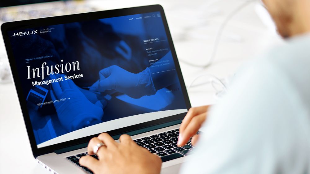 Healix was inclined to revamp its online presence to maintain its relevance and unique place within the industry. Resting as an informative site, there was a desire to bring more value to infusion therapy and attract potential partnerships through a visual and functional site redesign and with a refashioning of its services package listing. Ease of navigation was critical because technical decision makers who visit their site want immediate access to easily located, concise information. Above all, this national company required a website with strong universal appeal for its market.