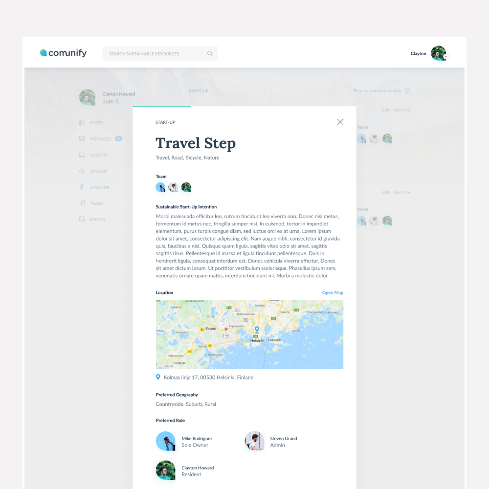 Communify is a multifunctional platform helping you take necessary steps to meet the planets urgent and immediate need for everyone to live sustainably. It does this by providing a directory of resources (i.e. tutorials and communities) that offer education and experience in ways to live and a platform to create a member profile with 5 main functions for everyone to take their first and further steps towards their sustainable goals.